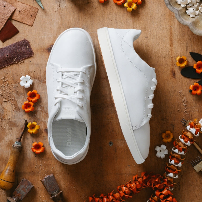 "The perfect white sneaker. Very comfortable from the start-day one. I love a white sneaker with jeans or shorts. My go to… the leather is beautiful. They fit true to size, I wear with socks and without." - Mary, Pehuea Lī ‘Ili, ⭐️⭐️⭐️⭐️⭐️
