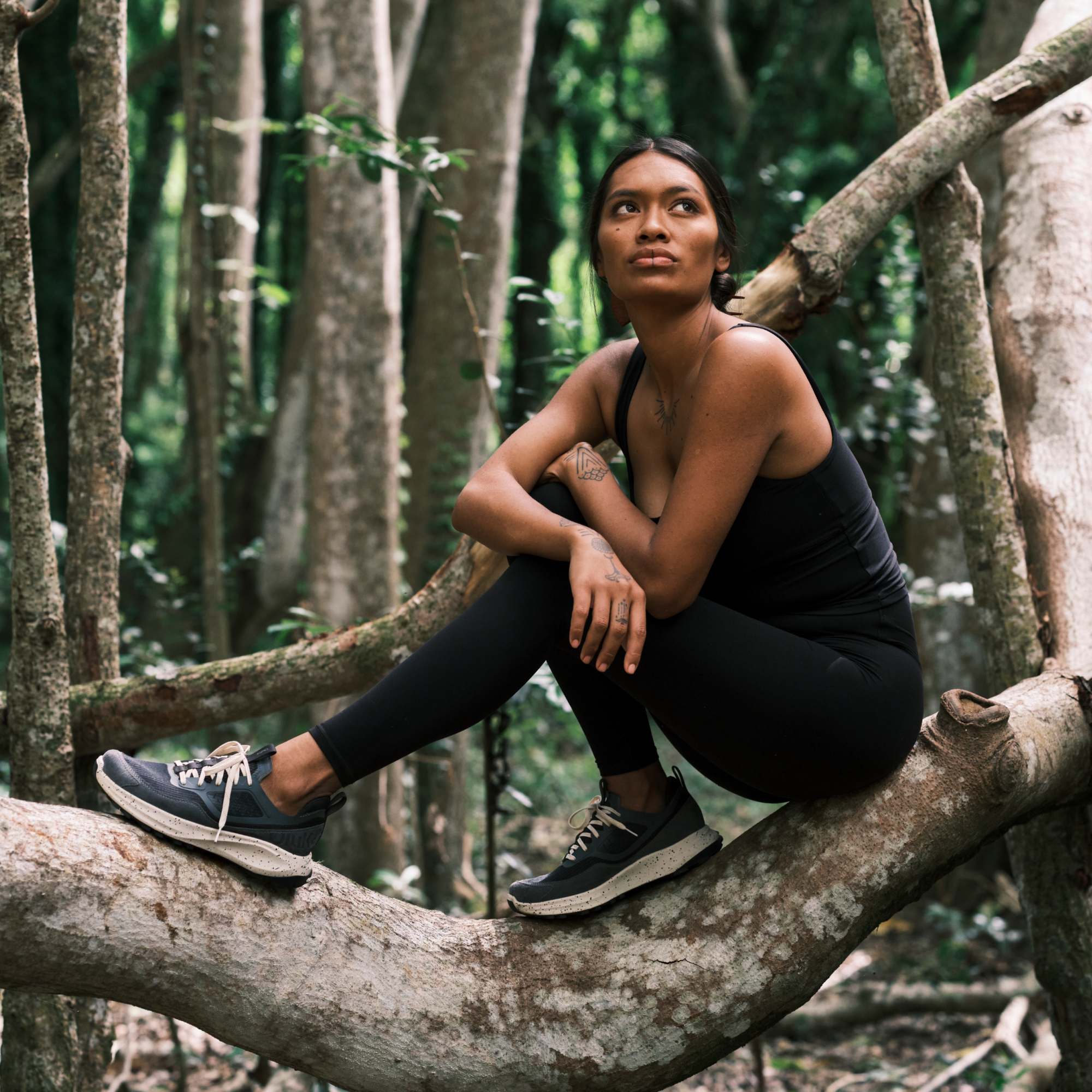 The Makiki’s sleek silhouette features water-resistant suede, mesh, and TPU overlays for added protection. Side panels reflect the organic curves of a natural journey.