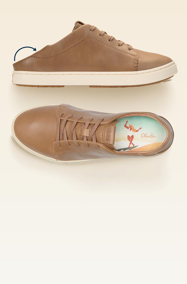 Discover the Pehuea Lī ‘Ili, an OluKai twist on the classic white leather court sneaker, enhanced with our Drop-In Heel® for versatile wear. This sneaker is meticulously crafted with premium full-grain leather and combines classic style with cutting-edge comfort. The outsole, inspired by the homebody nature of Hawai‘i’s butterflyfish, adds a unique island touch to this design. Whether you wear it as a sneaker or a slide, the Pehuea Lī ‘Ili is perfect for those who appreciate timeless style and comfort.